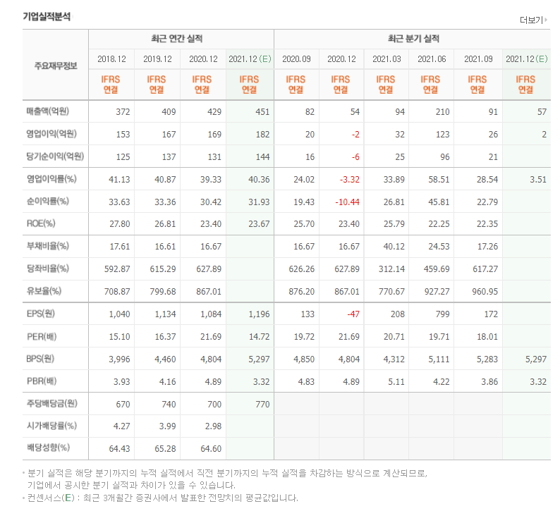 매출액은 꾸준히 늘어나고 있고, 영업이익이 대단합니다. 40%대네요~
